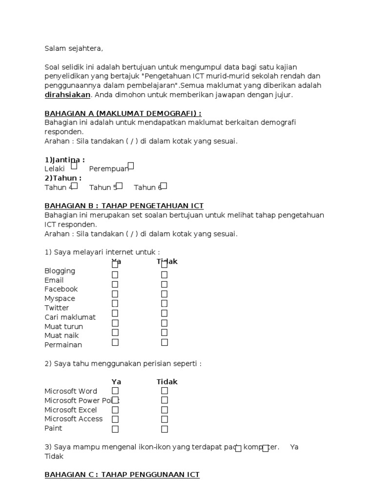 Segala maklumat anda adalah sulit d. Kajian tinjauan soal selidik dipilih. Posted by cikgu zul at 10:59 am. Report borang soal selidik, please fill this form, we will try to respond as soon as possible. Assalamualaikum w.b.t dan salam sejahtera.